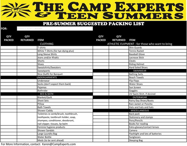 So if you are one to prepare in advance, here is a simple and organized “to-do list” to prepare for sleepaway camp!